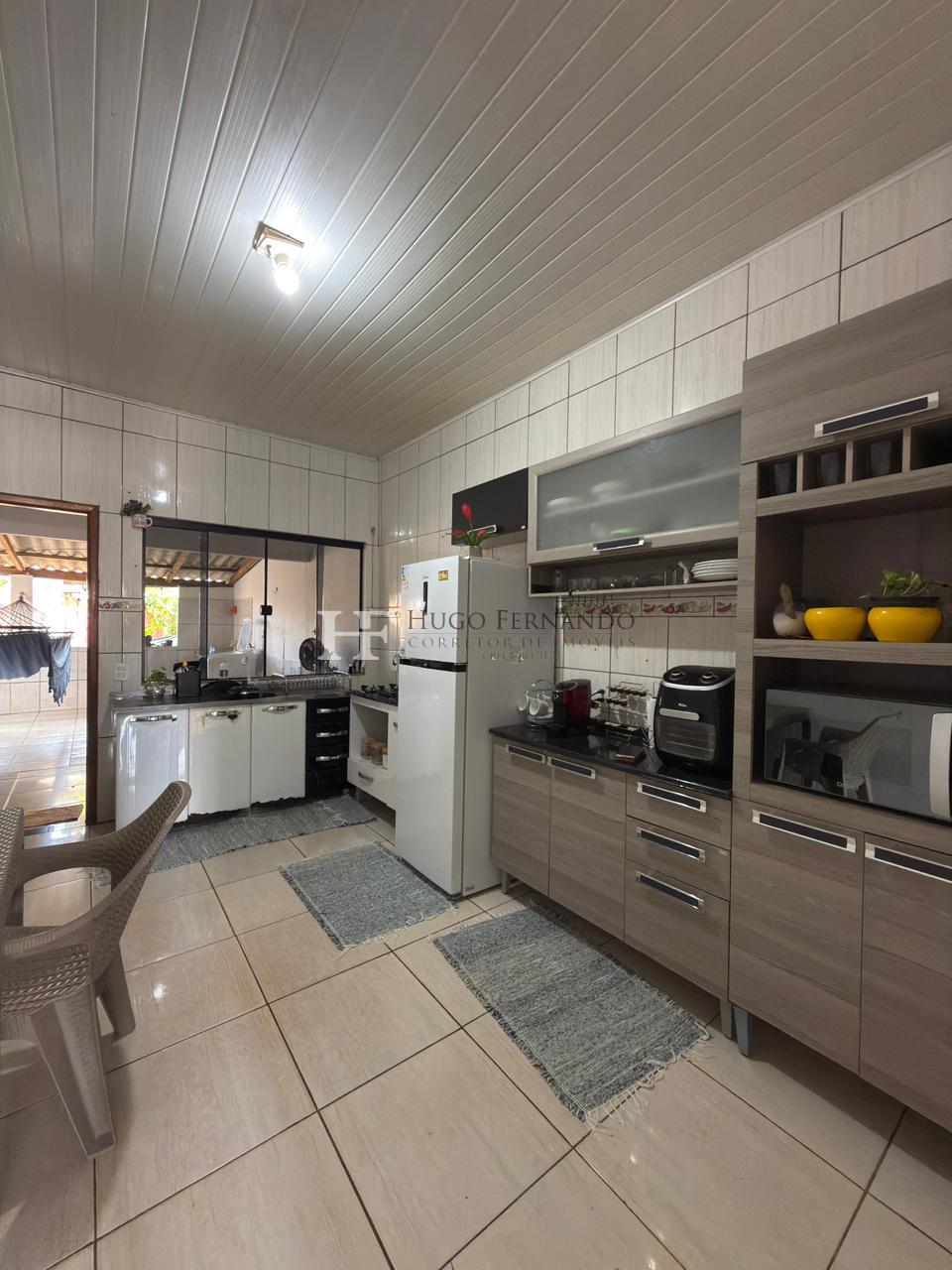 3 Quartos, banheiro social, sala, cozinha, lavanderia, área externa com banheiro, garagem para 02 carros.